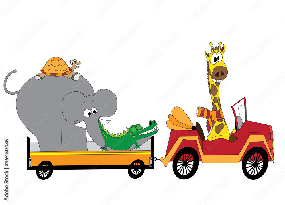 Bajki - Zwierzęta w samochodzie z przyczepą #49450436