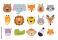 • Cute wild jungle animal faces and heads vector illustration. Hand drawn animal face cartoons including a fox, tiger, lion, monkey, giraffe, etc.