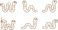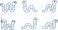• Set of cute cartoon worm illustrations in different poses, simple black line art characters isolated on white background for kids education and coloring