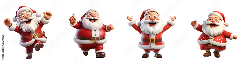 • Set of 3D cartoon character Santa Claus Marry Christmas happy smile dancing have fun, isolated on white and transparent background, ai generate