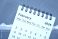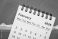 February 2026 - small spiral desktop calendar against art paper abstract, time and business concept