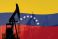 • Silhouette of old rig on a background of Venezuela flag.