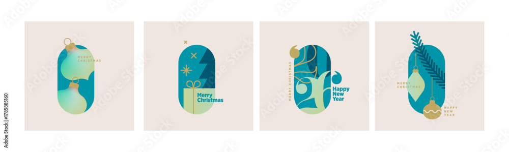 • Set of Christmas and New Year holiday cards. Vector illustration templates for holiday greeting card, background, website and social media banner, marketing material.