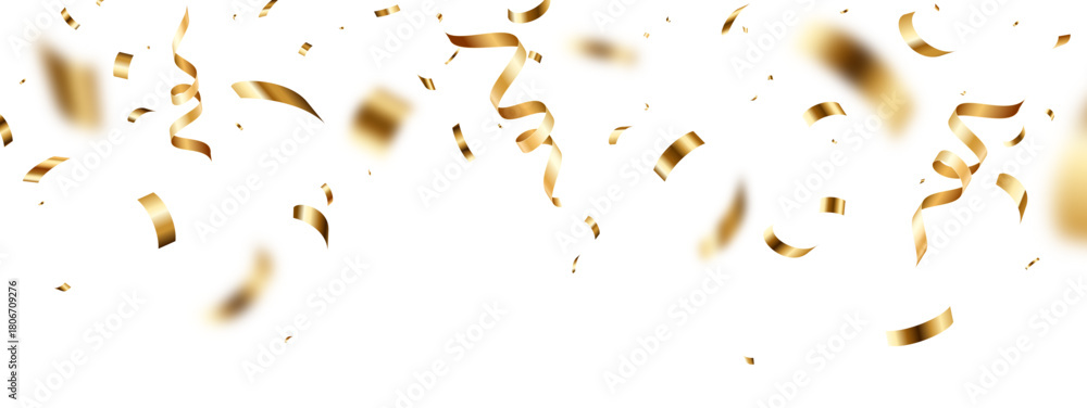 Krajobraz wiejski - Celebration background, gold confetti border, party banner #1806709276