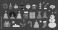 • Colorful retro Christmas icons collection. Snowman, Christmas trees, ornaments and other holiday elements set.