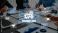 • A dynamic office setting depicts teamwork and workflow through charts and digital icons, showcasing collaboration and strategic planning among professionals. Raster