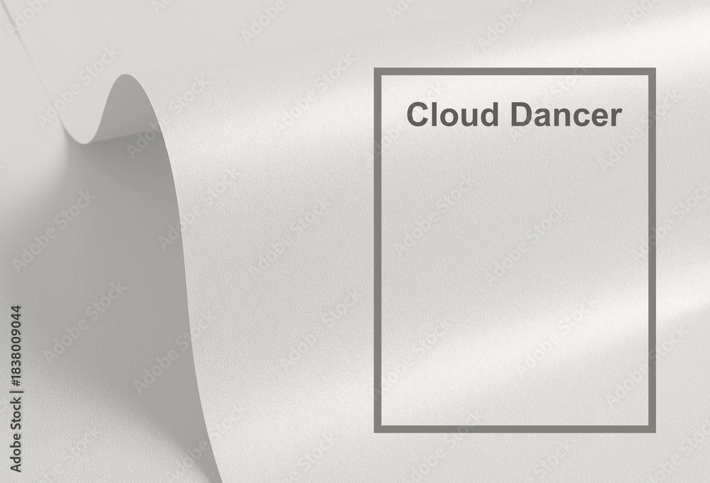 • Cloud Dancer, trendy off-white color of the Year 2026. Paper sheet.
