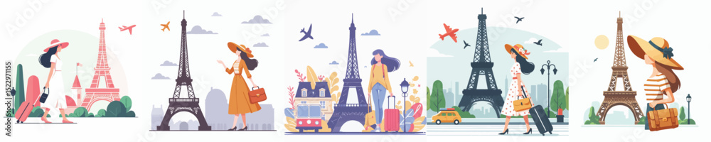Paryż - vector of a woman on vacation to paris eiffel tower #1522971155