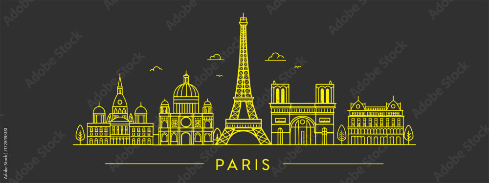 • Paris Skyline Line Art Vector Hand Drawn for Minimalist Wall Decor, T-Shirt Print and Merchandise