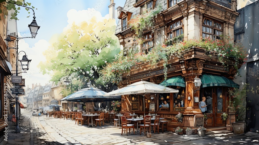 Paryż - Old coffeeshop on the cities of London and paris #623080797