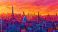 • papercut of paris city panorama at dusk with abstract wavy background