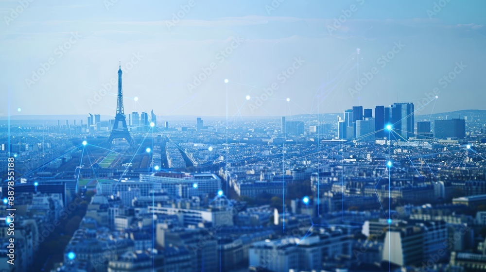 Paryż - Eiffel Tower Skyline with Network Connections #887855188