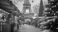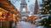 • Christmas market in Paris near the Eiffel Tower, decorated stalls with lights and ornaments, festive holiday atmosphere in the streets filled with people shopping for gifts