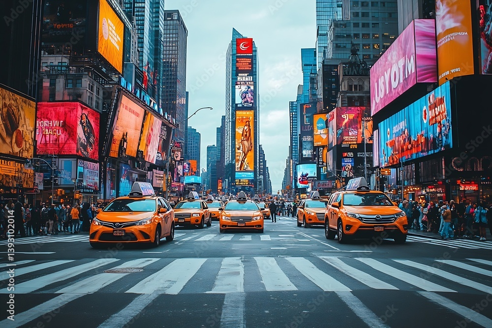New York - Times Square New York City Vibrant Urban Scene with Yellow Taxis and Bright Billboards Busy City... #1393102014