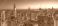 Brooklyn Bridge seen between two beautiful brown buildings at sunset