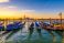 • Sunrise in San Marco square, Venice, Italy. Architecture and landmarks of Venice. Venice postcard with Venice gondolas