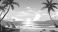 • travel themed vector background tropical beach shades of sandy beige and ocean blue. a vector illustration of a tranquil beach scene with palm trees, turquoise waters, and sun loungers.
