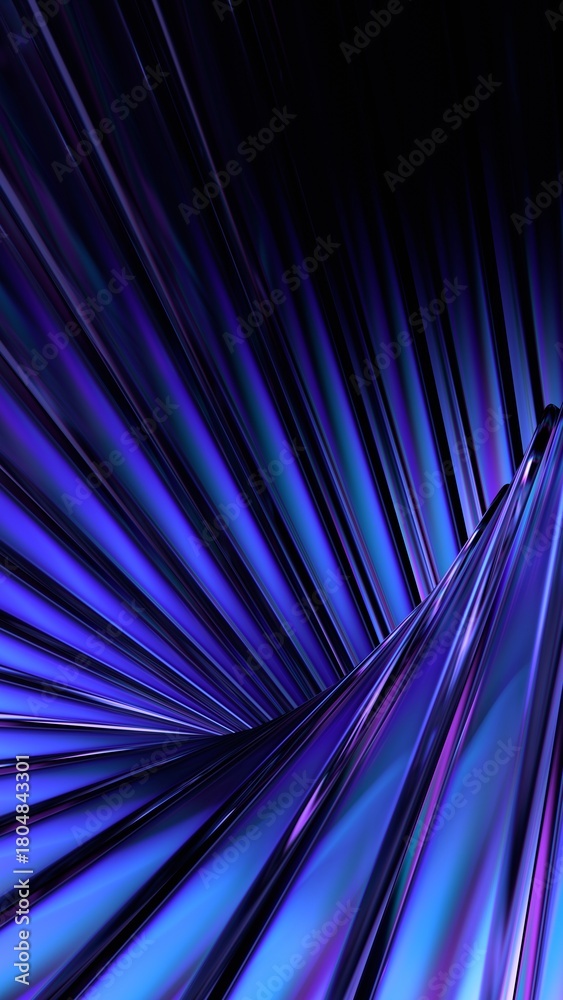 • Futuristic glass structure on black background, vertical orientation, 3d render