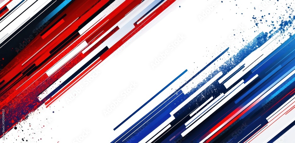 • Red, white, and blue background with diagonal lines for the Abstract concept on a white background design template with copy space Generative AI