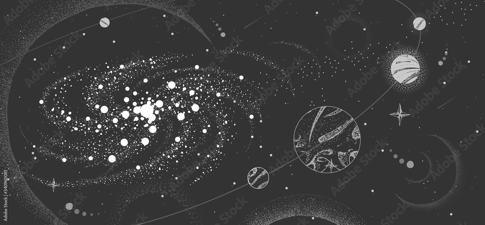Kosmos - Vector illustration of astrology background. Outer space and planets #340960085