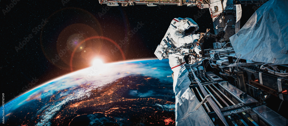 Kosmos - Astronaut spaceman do spacewalk while working for space station in outer space . Astronaut wear... #429767549