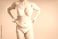 Przestrzeń - Unrecognizable plus size woman in beige lingerie pinching belly fat. Concept of weight loss, diet... #1965971536