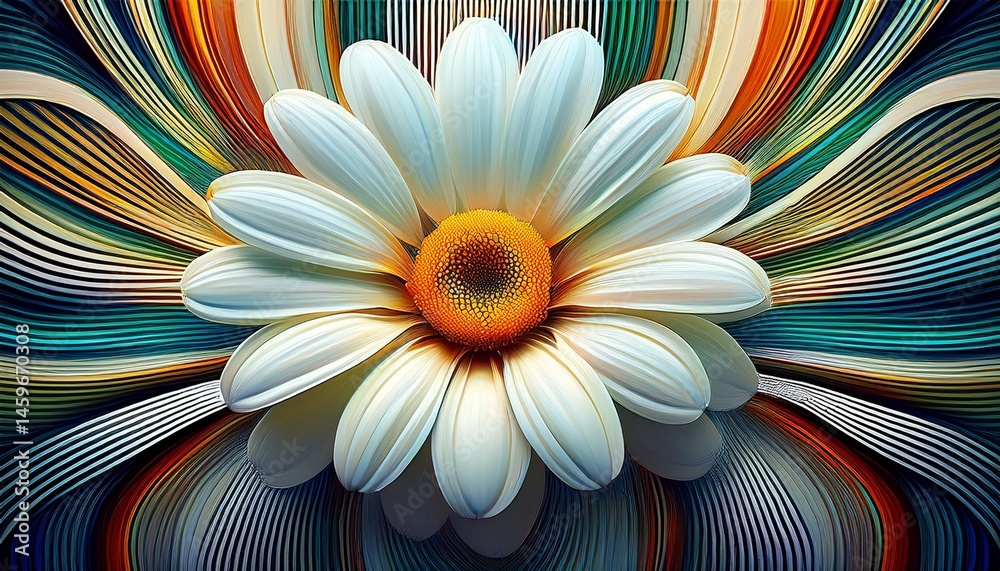 • white daisy flower in abstract striped background digital art nature bloom