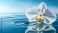 Makro - elegant white orchids floating on clear water single droplet macro flower background #1802932991