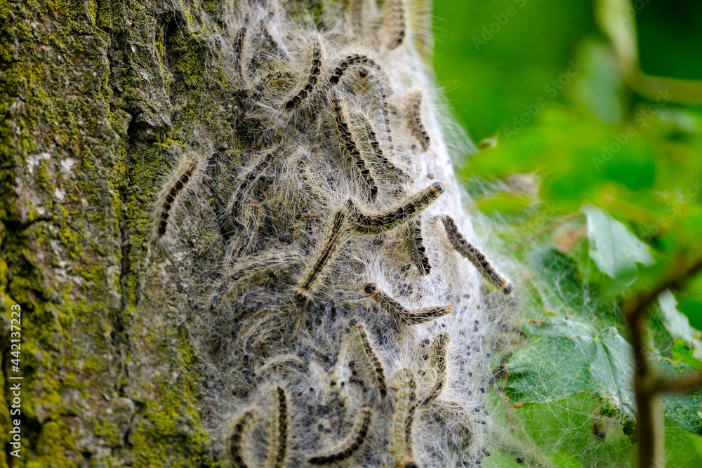 Makro - Eichenprozessionsspinner in ihrem Nest an einer Eiche #442137223