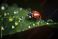 Makro - Portrait d'une coccinelle sur une feuille verte avec des gouttelettes d'eau » IA générative #594182610