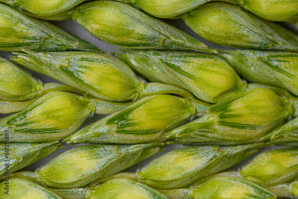 Makro - Zielona tapeta, struktura kłosów pszenicy w powiększeniu makro #617285187