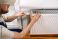 • Plumber installing a modern radiator for efficient home heating during winter