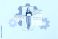 • Image trendy art banner collage of happy businesswoman businessman stand phone freelancer browsing gearwheel progress mechanism
