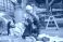 Retro - Accident worker in workplace, young man down leg injury senior supervisor emergency medical help #1771236971
