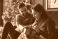 Retro - Happy woman receiving Christmas present from her boyfriend at home. #1772283579