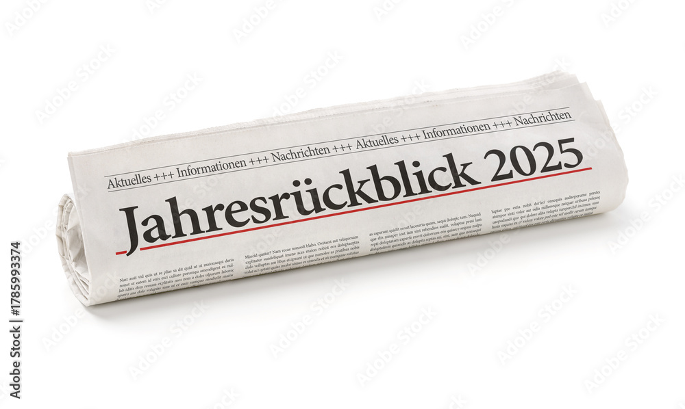 Retro - Zeitungsrolle mit der Überschrift Jahresrückblick 2025 #1785993374