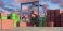 Retro - Container crane lifting cargo containers in a busy shipping yard at sunset, representing... #1797850455