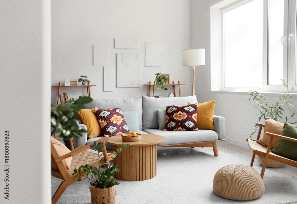 Retro - Interior of living room with comfortable sofa, armchairs and table #1800897823