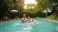 • A man and a woman are having fun and drinking cocktails in the pool.