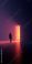 Retro - Man standing near glowing portal doorway in dark futuristic minimal space. Concept of transition,... #1988458680