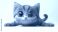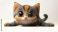 • A 3D cartoon cat with big eyes, stretching playfully on a white background