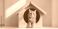 Koty - Cozy wooden cat house with a playful orange tabby inside. #1270606152