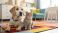 • A dog and a cat sit together on a colorful rug in a cozy room, showcasing companionship in a bright and inviting home environment.