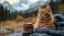 Koty - Orange cat cozy autumn mountain view knit mug #1496924091