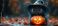 • Cute black cat with witch hat holding halloween pumpkin adorable kitten image