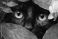 Koty - Intriguing close-up of a black cat peering from behind lush foliage and blossoms, showcasing... #1769872478