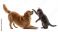 Koty - playful interaction between a golden retriever dog and a grey cat, captured in a dynamic moment... #1910703770