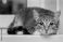 Koty - The frightened tabby cat shrank at the window. Her eyes grew larger and darker with fear. #311228239