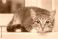 • The frightened tabby cat shrank at the window. Her eyes grew larger and darker with fear.
