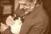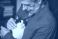 Koty - Senior man petting his cat on a sofa #335343050
